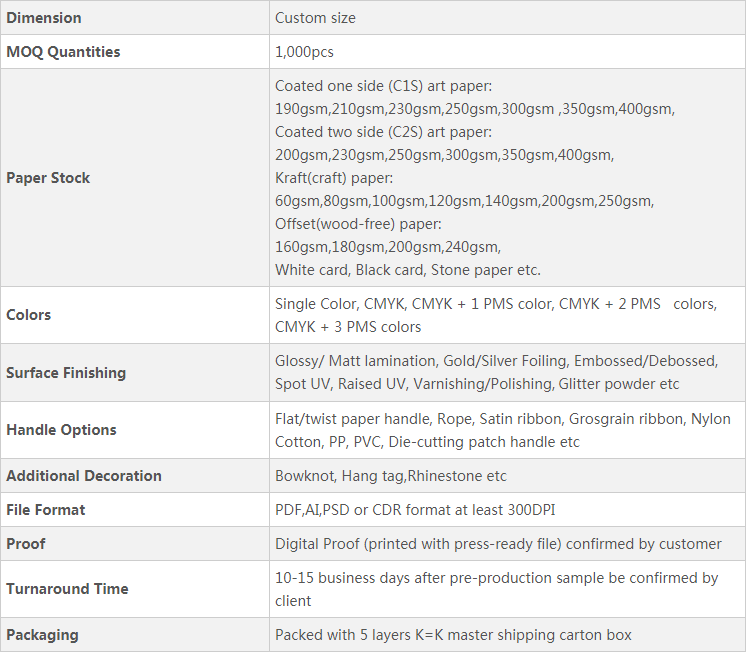 Awọn alaye gbogbogboTi awọn baagi ẹbun ilẹ: